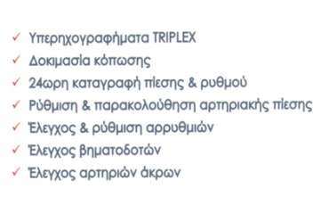 Πλήρης Καρδιολογικός έλεγχος, test κοπώσεως, holter ρυθμού - πίεσης,